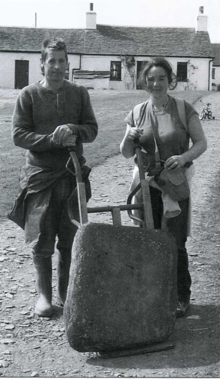 Stone carvers Gillian Forbes and Martin Reilly with Easdale slate for the Scottish Parliament. The slate, now in situ on The Canongate Wall, contains a quote from 'Heart of Midlothian' by Sir Walter Scott